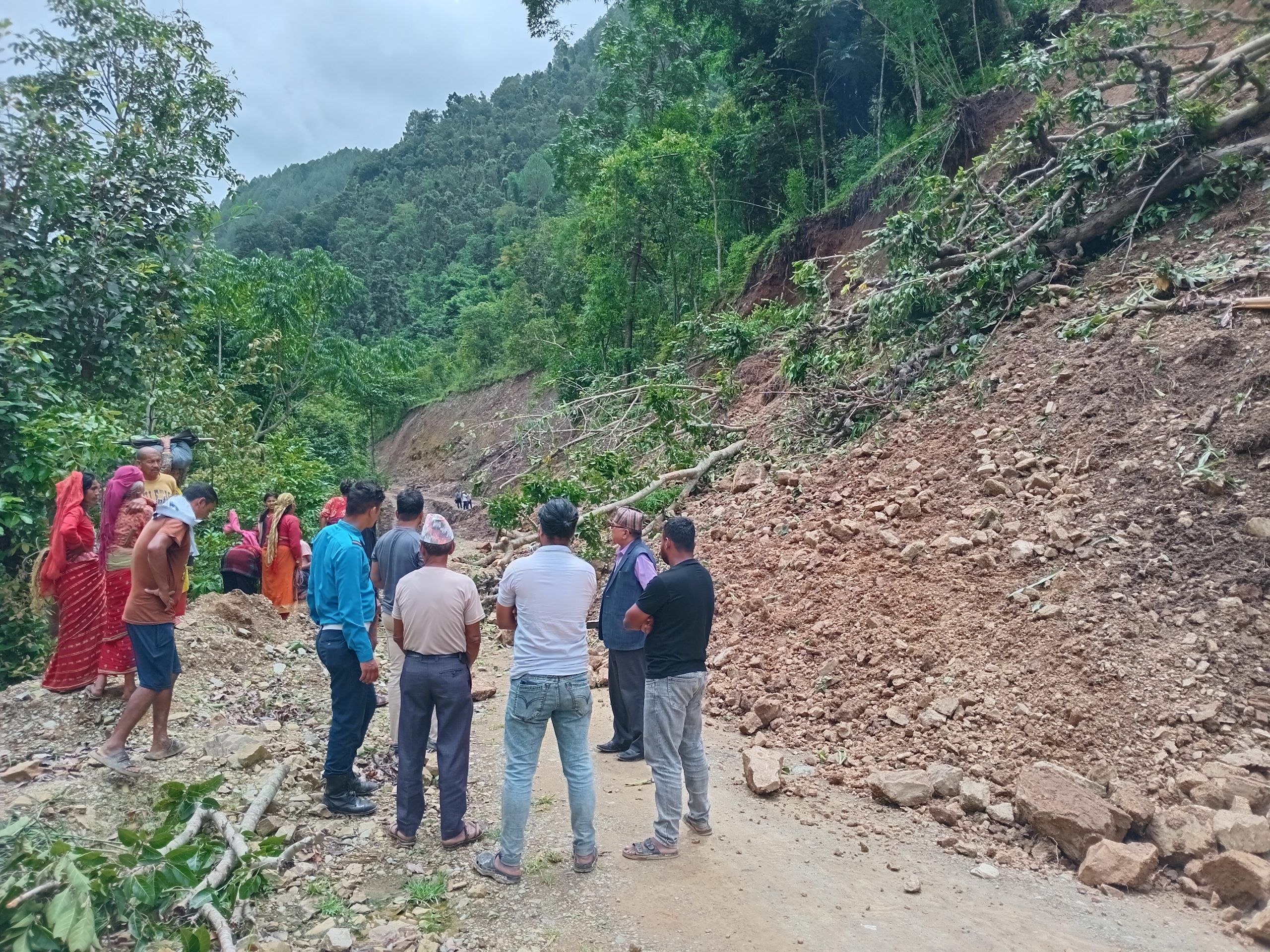 जिल्लाको विभिन्न स्थानमा बाटो अबरुद्ध, अवरुद्ध सडक खुलाउने काम जारी