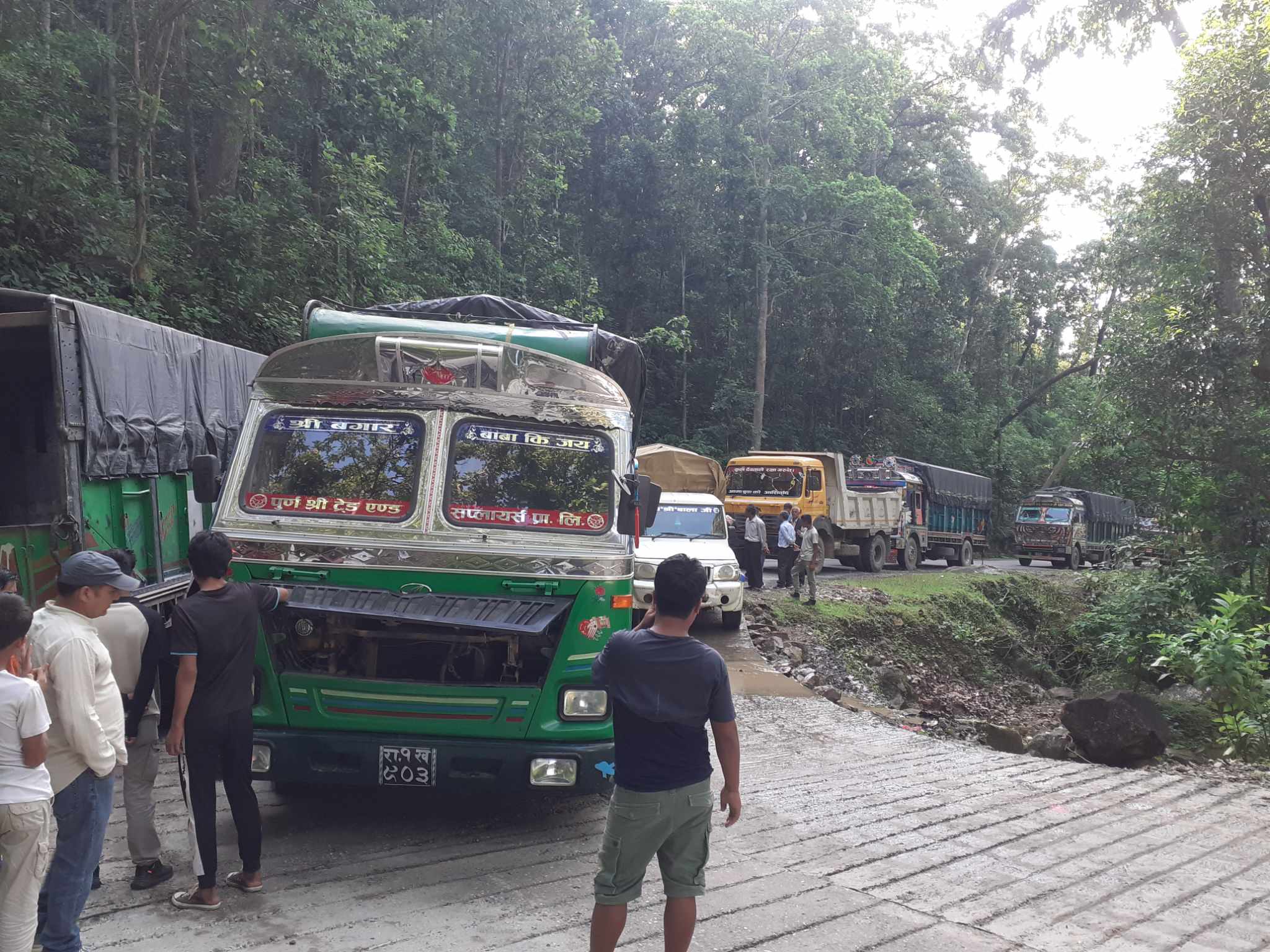 बाटोमा ट्रक बिग्रीदा भालुवाङ-प्यूठान सडक अबरुद्ध