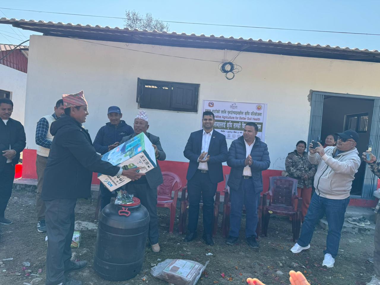 बुधबार एक कार्यक्रमको आयोजना गरी १० जना अगुवा किसानलाई ‘माटोको स्वस्थ कार्ड’ र सामागी वितरण गरिएको थियो । परियोजनाले रासायनिक मल र विषादीको प्रयोग नगरी जैविक मल र जैविक विषादीको प्रयोग गरि उत्पादन र उत्पादकत्व बढाउने उदेश्यले नमुना परियोजना संचालन गरिएको छ । माटोको स्वास्थ्य बिग्रदै गएकोले माटोको स्वास्थ्यलाई सुधार गर्न परियोजनाले सहयोग पुग्ने अपेक्षा लिएको छ ।