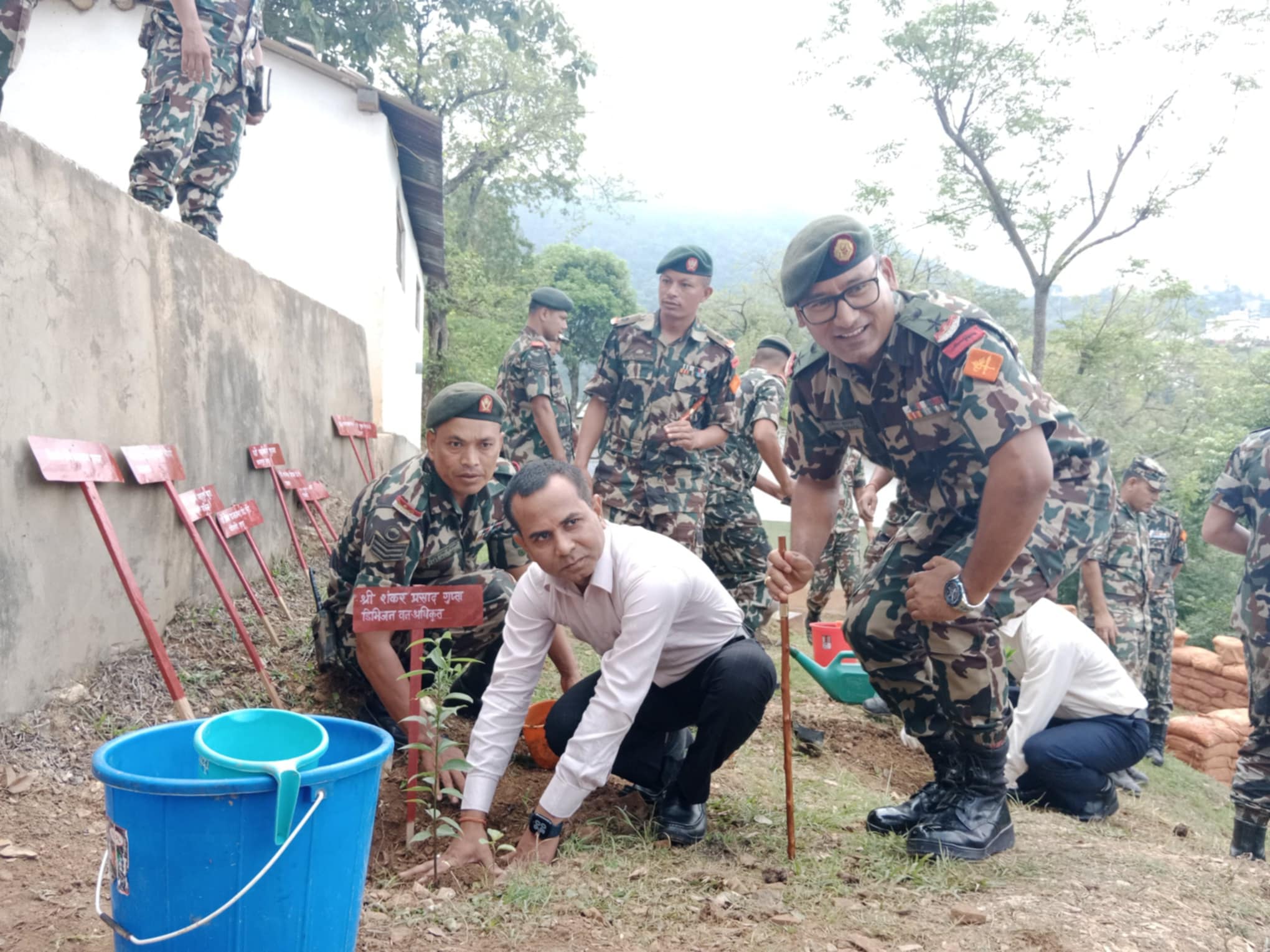 उहाँले एक सिपाही एकबिरुवा भन्ने अवधारणा अन्तरगत वृक्षारोपण गरिएको उल्लेख गर्नुभयो । वृक्षारोपण कार्यक्रममा १९ नम्बर बाहिनीपति सहायक रथी भुवनपूर्ण सत्यालको विशेष उपस्थितिमा वृक्षारोपण गरिएको थियो ।