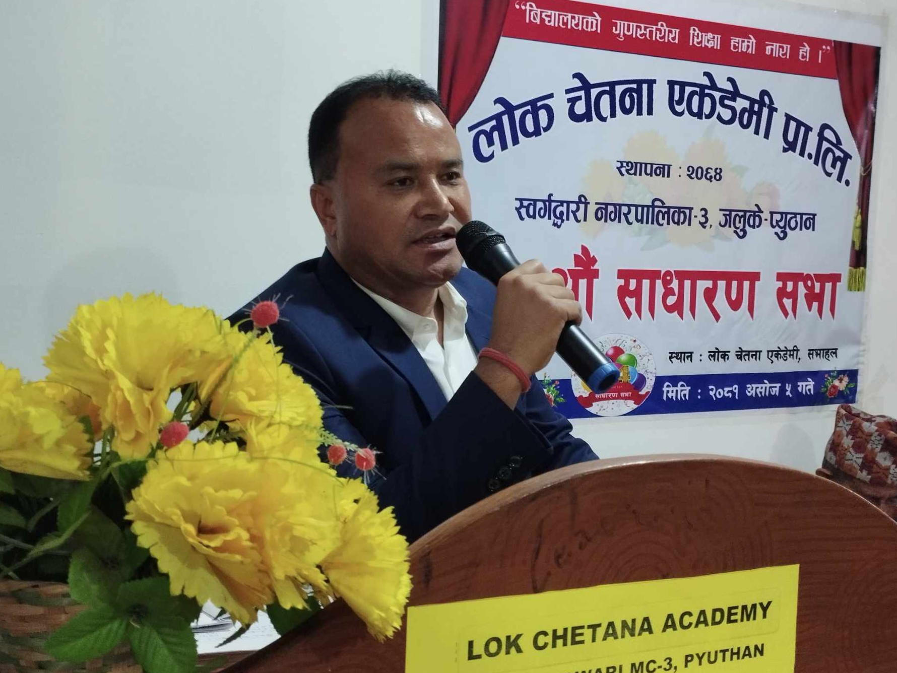 कार्यक्रममा पूर्व स्रोत ब्यक्ति बल बहादुर रोकायले लोक चेतना एकेडेमीको शैक्षिक गुणस्तरमा राम्रो प्रगति गरेको बताउनुभयो । बिद्यालयलाई अब्बल बनाउ सहयोग गर्ने सबै सेयर सदस्य, शिक्षक र मेहेनेती बिद्यार्थीलाई अध्यक्ष राम प्रसाद श्रेष्ठले धन्यावाद ज्ञापन गर्नु भएको थियो ।