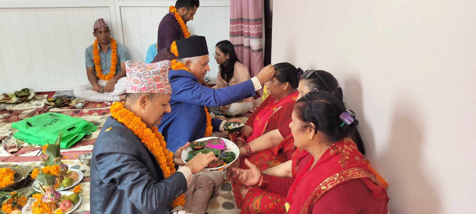 यस्तै मुख्यमन्त्री आचार्य सहित उहाँका जेठा दाई बावुराम आचार्य, साईलो भाई खुविराम आचार्य र कान्छो भाई माधव आचार्यले समेत दिदीबहनीको हातबाट टीका ग्रहण गर्नु भएको छ । यसैविच तिहारको अवसरमा शुभकामना दिदै मुख्यमन्त्री आचार्यले तिहार पर्वले आपसी सद्भाव, सहिष्णुता र भ्रातृत्वको भावना अभिवृद्धि गर्दै सामाजिक, सांस्कृतिक एकतालाई थप सुदृढ बनाउन मद्दत पु¥याउने विश्वास लिएको बताउनु भएको थियो ।