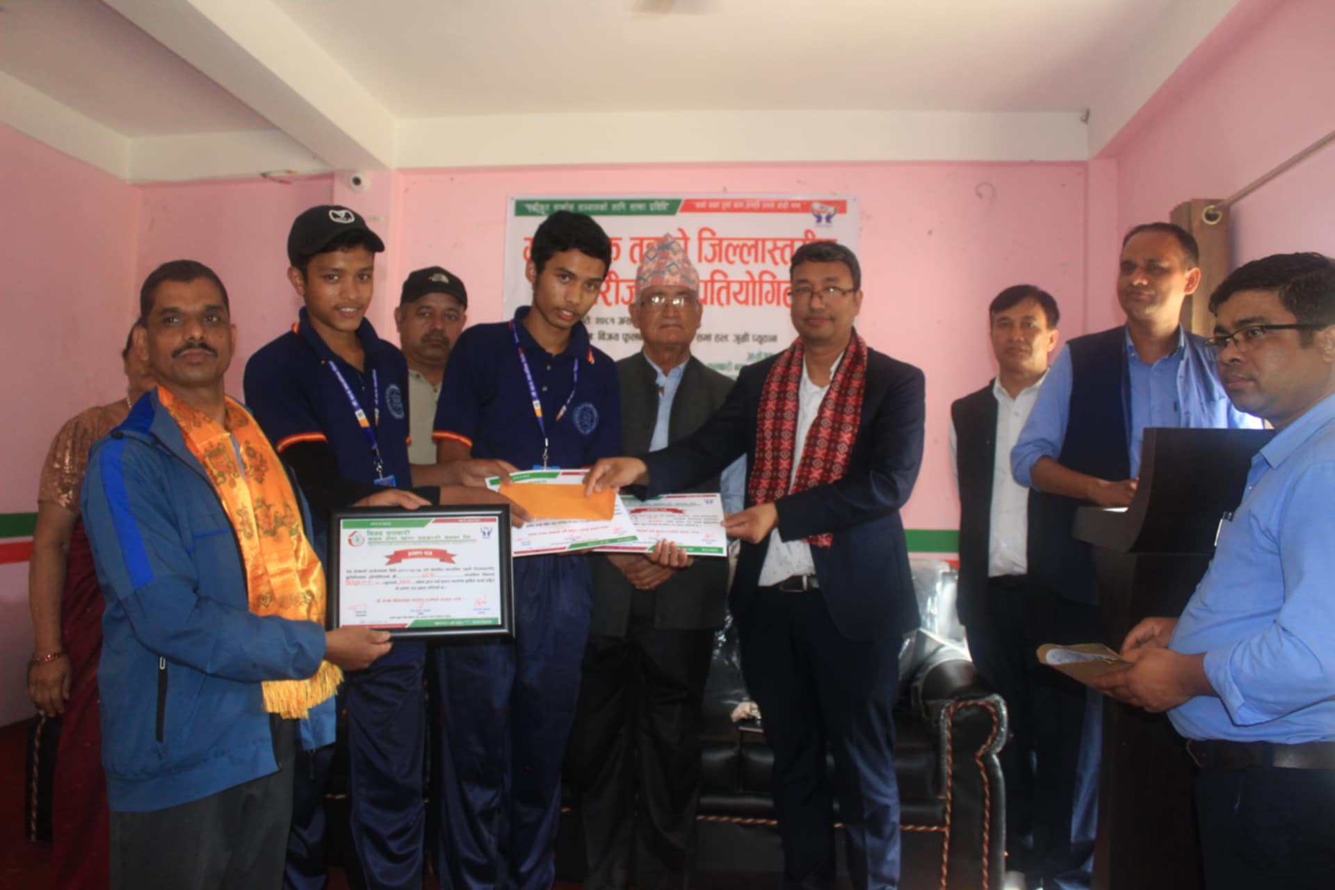 प्रतियोगितामा प्रथम हुनेलाई रु. ७ हजार ३ सय ३३, द्धितिय हुनेलाई ६ हजार, तृतिय हुनेलाई ४ हजार ६ सय ६६ र सान्त्वना हुनेलाई २ हजार ६ सय ६६ नगद तथा प्रमाणपत्र प्रदान गरिएको बैधले जानकारी दिनुभयो।