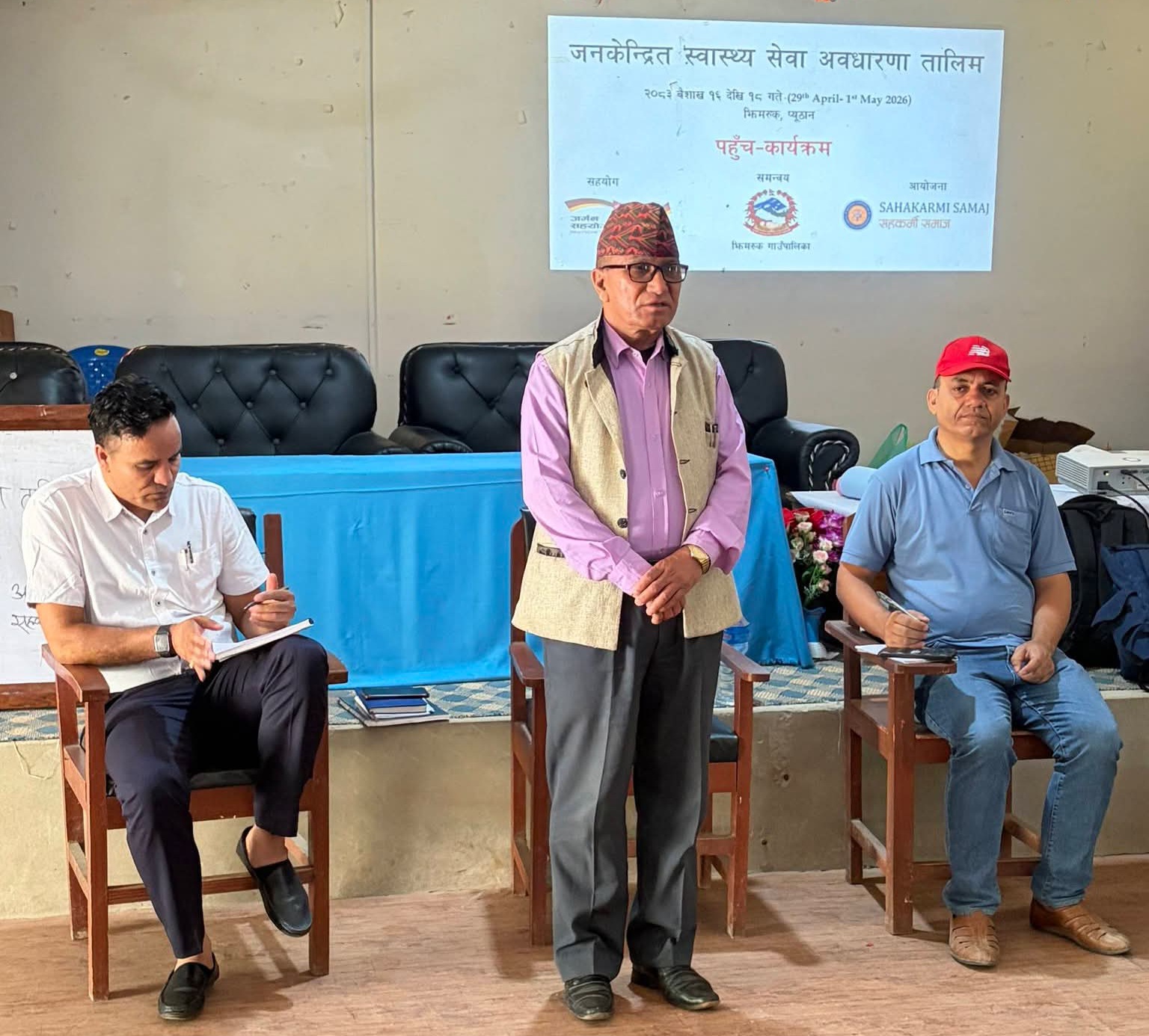प्युठान । जिल्लाको झिमरुक गाउँपालिकामा सरोकारवालालाई तीन दिने जनकेन्द्रित स्वास्थ्य सेवा अवधारणा सम्बन्धी तालिम शुरु गरिएको छ । बुधबार जनप्रतिनिधि, स्वास्थ्य संस्थाका स्वास्थ्यकर्मी, महिला स्वास्थ्य स्वयंसेविका, लगायत सरोकारवालालाई यो तालिम दिइएको हो ।